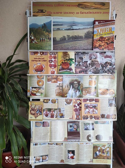 У фойє КЗ «Хмільницька публічна бібліотека» представлено книжково-ілюстративну виставку «Вклоняємося хлібові святому, що кличе здалеку до батьківського дому», матеріали якої розповідають про шанобливе ставлення українців до хліба з давніх-давен, про звеличення хліба та хліборобської праці в народних обрядах, що зберегли донині дух священнодійства випікання хліба.
