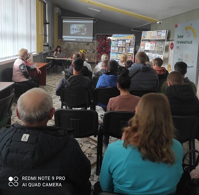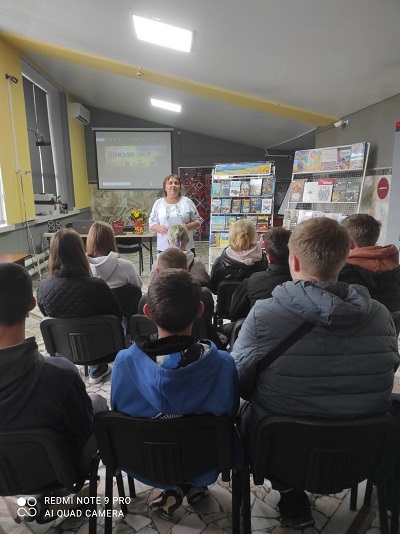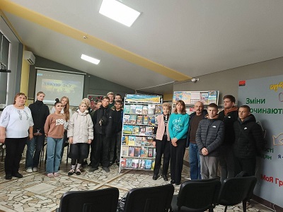 1 жовтня в Центрі активності громадян відбувся патріотично-просвітницький колаж «Україно! Будь сьогодні і для вічності живи». Захід організований працівниками КЗ «Хмільницька публічна бібліотека» спільно зі здобувачами освіти перших курсів та викладачами ДПТНЗ «Хмільницький аграрний центр професійно- технічної освіти» (майстер виробничого навчання Загоровський О.С., викладачка іноземної мови Стаднійчук С.А., бібліотекар Косіцька С.В.)