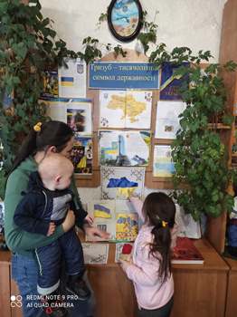 Герб держави – Україна символізує мир і творчу працю, спорідненість поколінь, він є продовженням глибинних історичних геральдичних традицій українського народу. Тризуб означає триєдність життя – батько, мати, дитя, які символізують силу, мудрість і любов. Тризуб ще відображає єднання трьох стихій – землі,води, повітря, без яких неможливе життя. Якщо придивитися уважно до герба, то можна скласти слово з його частин –«воля». Адже до волі завжди прагнув український народ. Про історію державного символу розповідали під час проведення уроку історії «Герб України – символ віри і надії», що пройшов у читальному залі КЗ «Хмільницька публічна бібліотека». Також презентується книжкова ілюстративна виставка «Тризуб – тисячолітній символ державності».