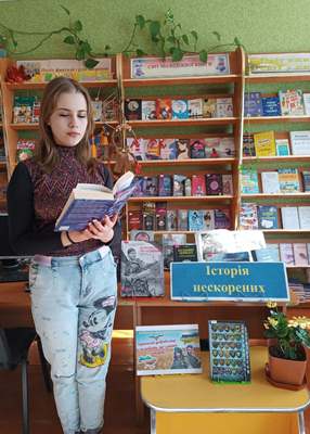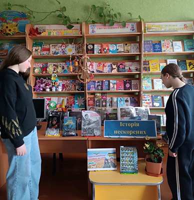 Старшокласники ознайомилися з книжковими та інформаційними матеріалами, які предсталені на книжковій виставці « Історія нескорених» , що висвітлюють подвиги українських добровольців, їхню відвагу, самопожертву та відданість Батьківщині, обговорили значення мужності, відповідальності та любові до України.
