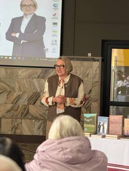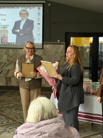 У ході зустрічі на адресу письменниці звучали теплі слова вітань та щирих побажань від Вікторії Стукан, головного спеціаліста Відділу культури та туризму Хмільницької міської ради, Олени Бугайової, директорки КЗ «Хмільницька публічна бібліотека».
