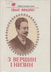 | Франко, І. З вершин і низин : Поезія, поема / Іван Франко. - Київ: Веселка, 1992. - 189 c. Збірка поезій "З вершин і низин" (1887 р.) стала першоосновою творчості поета, продемонструвала новизну і самобутність його таланту. Саме у цій збірці вперше явились читачам такі шедеври громадської поезії, як "Гімн", "Каменярі", "Гримить!", "Не пора", "Земле, моя всеплодющая мати". |